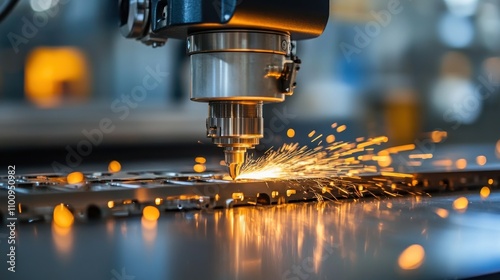 Robotic arms precisely assembling car parts in a modern automotive factory with sparks flying in a controlled environment