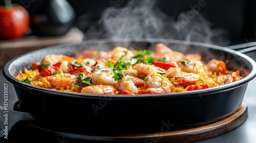 Robotic paella cooking machine, automating the precise cooking of rice, seafood, and spices for authentic flavor