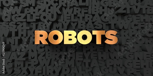 Robots - Gold text on black background - 3D rendered royalty free stock picture. This image can be used for an online website banner ad or a print postcard.