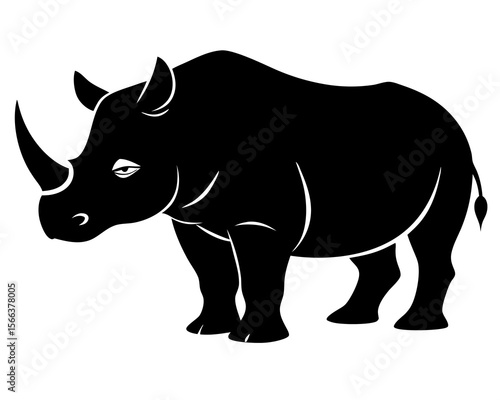Robust Rhino Silhouette: rhino black silhouette on transparent background