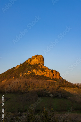Rock of Solutre with vineyards, Burgundy, Solutre-Pouilly, France