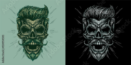 Rockabilly skull has mustache and beard vector scribble art picture illustration is perfect for your printable t-shirts, posters, banners and banners and also suitable for other items