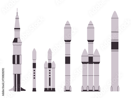 Rocket flight spaceship spacecraft set collection space travel flat graphic illustration