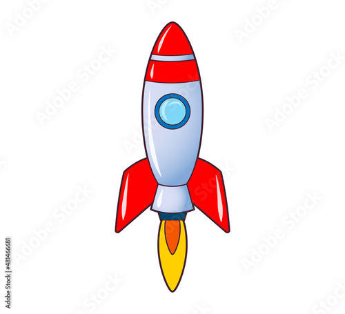 Rocket flying up into space. Icon, coloring book. Vector isolated illustration on white background, black and white line art