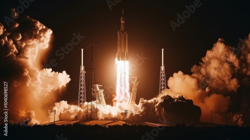 Rocket Launch Illuminates Night Sky with Powerful Flames