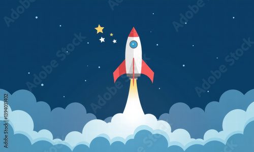 Rocket Launch Startup Success Space - Flat design