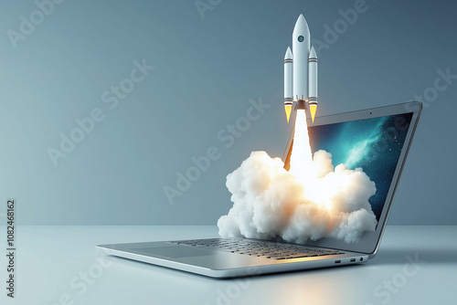 Rocket Launching from Laptop: Symbol of Digital Innovation