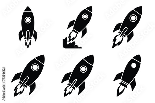 rocket silhouette vector vector art icon set