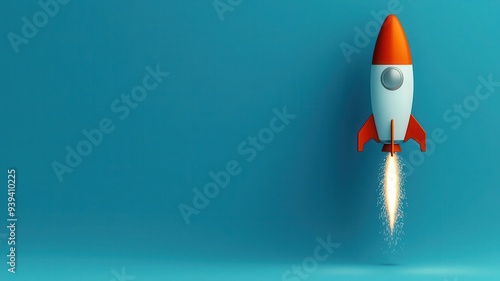 Rocket soaring into the sky, trailing profit symbols, investment success, 3D illustration