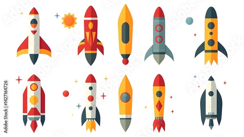 Rocketship Flat Icon Illustration: Creative Design Element for Space-themed Projects