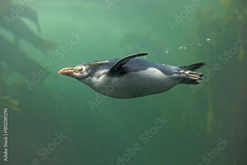 Rockhopper penguin (Eudyptes chrysocome), adult, in water, swimming, South Africa