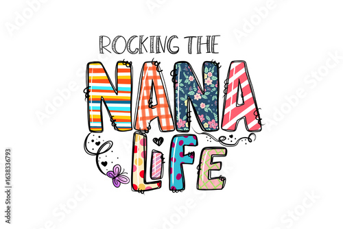 Rocking The Nana Life – Funky Colorful Grandma Lettering Art Sublimation T Shirt design