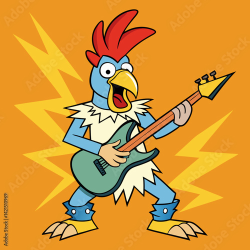 Rockstar Rooster Playing Electric Guitar with Lightning Bolts