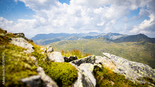 rocky landscape in the foreground with mountains in the background