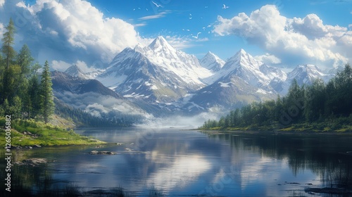 Rocky Mountains, their snow-capped peaks reflecting in an alpine lake.