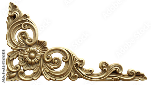 Rococo ornament frame, noble golden vintage style ornamental stucco isolated on white background PNG