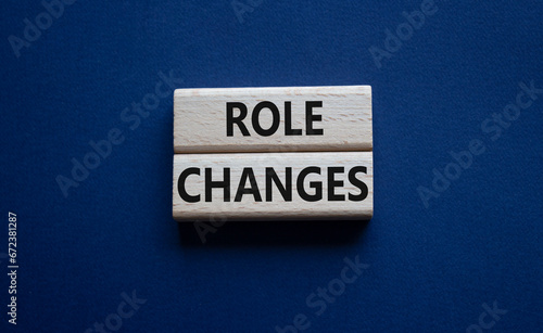 Role changes symbol. Concept words Role changes on wooden blocks. Beautiful deep blue background. Business and Role changes concept. Copy space.
