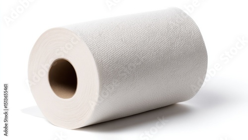 Roll of White Paper Towels on White, Representing Cleanliness and Household Essentials for Hygiene and Sanitation Products : Generative AI