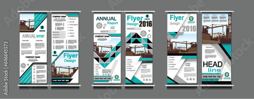 Roll Up Banner blue business Construction annual report brochure flyer design template vector