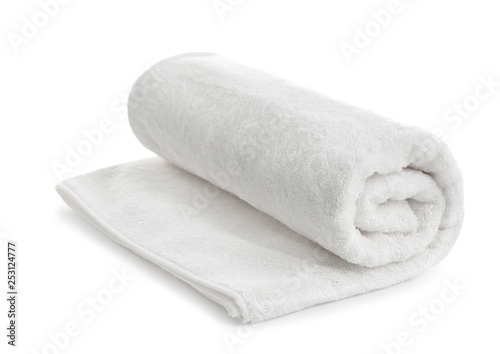 Rolled soft terry towel on white background