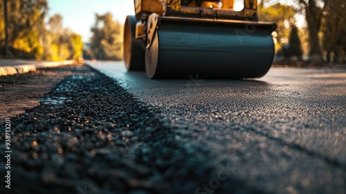 Roller Compacting Paved Road Surface and Installing New Sidewalk