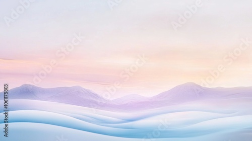 Rolling hills and mountains bathed in the soft glow of a pastel sunset create a serene and dreamy landscape, evoking a sense of tranquility and peace