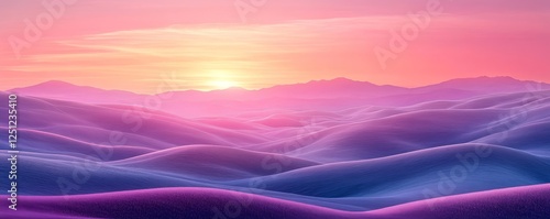 Rolling Hills at Sunset With a Pink Sky, Generative AI