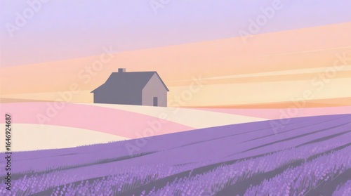 Rolling Lavender Fields under Soft Sunset Sky