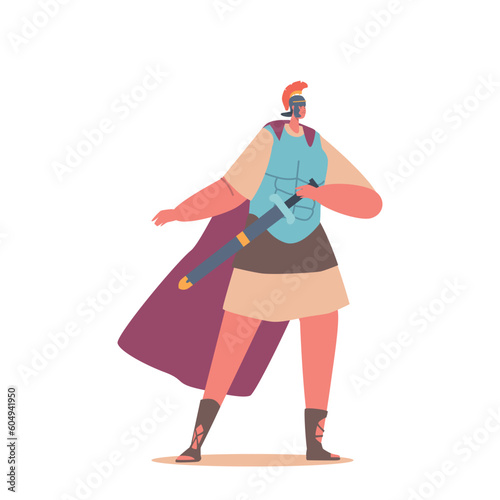 Roman Soldier Character Disciplined And Highly Trained, Equipped With Armor And Weapons, Vector Illustration