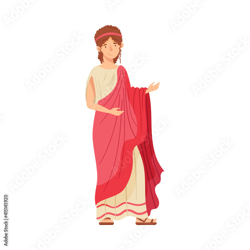 Roman Woman Wearing Long Tunic and Sandals as Traditional Clothes Vector Illustration