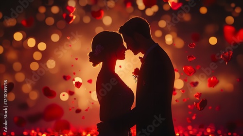 Romantic Beach Sunset Wedding Couple Silhouette Image