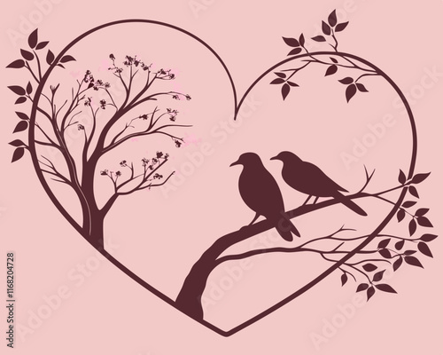 Romantic Bird Silhouette with Heart shape: .pastel background and Valentine's Day, Love-Themed Design.