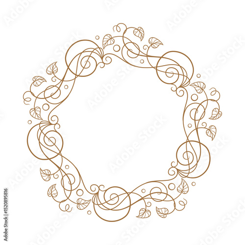 Romantic botanical frame with graceful vines and ivy-like leaves. Curved decorative wreath in hand-drawn style. Vector illustration.