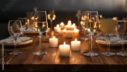 Romantic candlelight dinner mockup with multiple tea light candles glowing on a wooden table, creating a warm and intimate atmosphere.