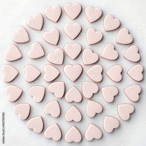 Romantic composition of many pink hearts forming an empty heart in the center. Delicate color scheme creates an atmosphere of love, care, romance. Postcard, poster for VALENTINE'S DAY and March 8