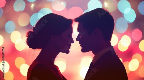 Romantic couple embrace city lights silhouette photography nighttime close-up love
