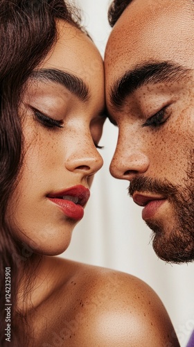 Romantic Couple Forehead Touch Close Up Portrait Freckles Intimacy Love Passion Sens