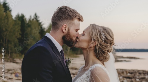 Romantic Couple Kissing at Sunset Wedding Photography Beach