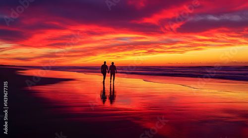 Romantic Couple Silhouette at Sunset Beach