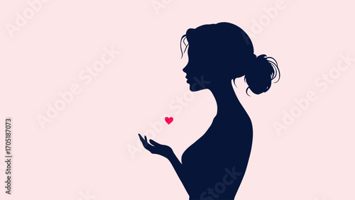 Romantic flat vector illustration celebrating Wife Appreciation Day with elegant female silhouette and heart symbol on soft pink background, perfect for greeting cards and posters