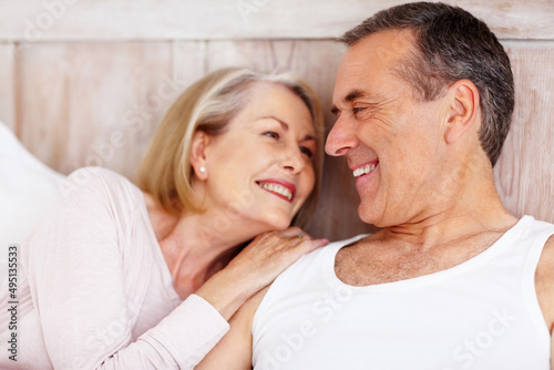 Romantic mature couple looking at each other, smiling. Closeup portrait of a romantic mature couple looking at each other, smiling.