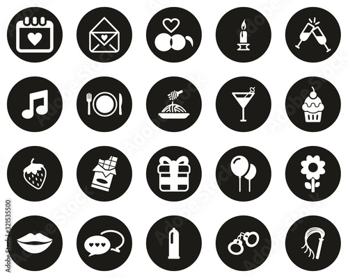 Romantic Or Courting Icons White On Black Flat Design Circle Set Big