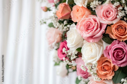 Romantic Pastel Roses Bouquet Wedding Flowers Soft Pink Peach White Roses Arrangement