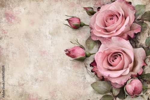 Romantic Pastel Roses on Textured Background