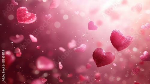 Romantic Pink Hearts Falling Background Valentine s Day Love Bokeh Lights Confetti