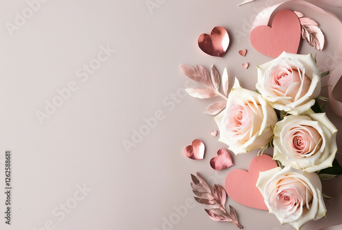 Romantic Pink Roses and Hearts Background, Valentine's Day