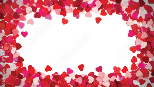 Romantic red and pink heart confetti frame on a white background, ideal for Valentine's Day, love, and celebration designs.