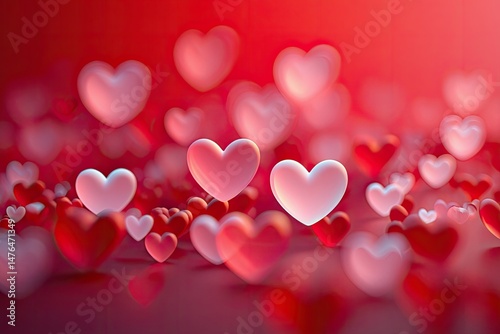 Romantic red background featuring floating hearts and soft bokeh for valentine's day celebrations