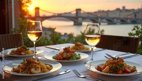 Romantic Sunset Dinner with Delicious Pasta Dishes and Fine Wine