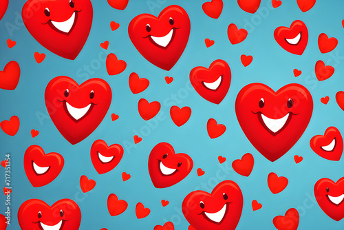 Romantic Valentine's Day: Funny design with a smiling red love heart seamless pattern and bright doodle heart background generative ai